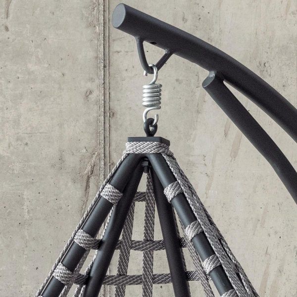 - Gracias al aluminio, el mantenimiento de tu huevo colgante de jardín ya no será un problema, ya que el aluminio es un material muy utilizado en muebles para exterior gracias a sus propiedades y fácil mantenimiento.