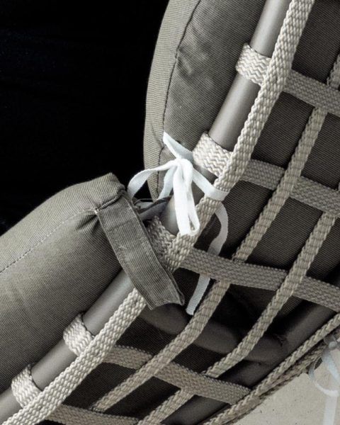 La estructura de este sillón, está revestida de cuerda trenzada en color champagne, azul, blanco o gris antracita. Se trata de una cuerda indeformable e irrompible, resistente a cualquier temperatura. No pierde su forma ni color y está diseñada 100% para su uso en exterior.
